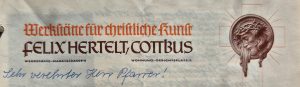 Anschließend ließ er sich in Cottbus nieder und gründete im Jahr 1923/24 seine „Werkstätte für christliche Kunst“. Das Atelier hatte er in der Marktstraße 6, seine Wohnung am Gerichtsplatz 1.