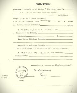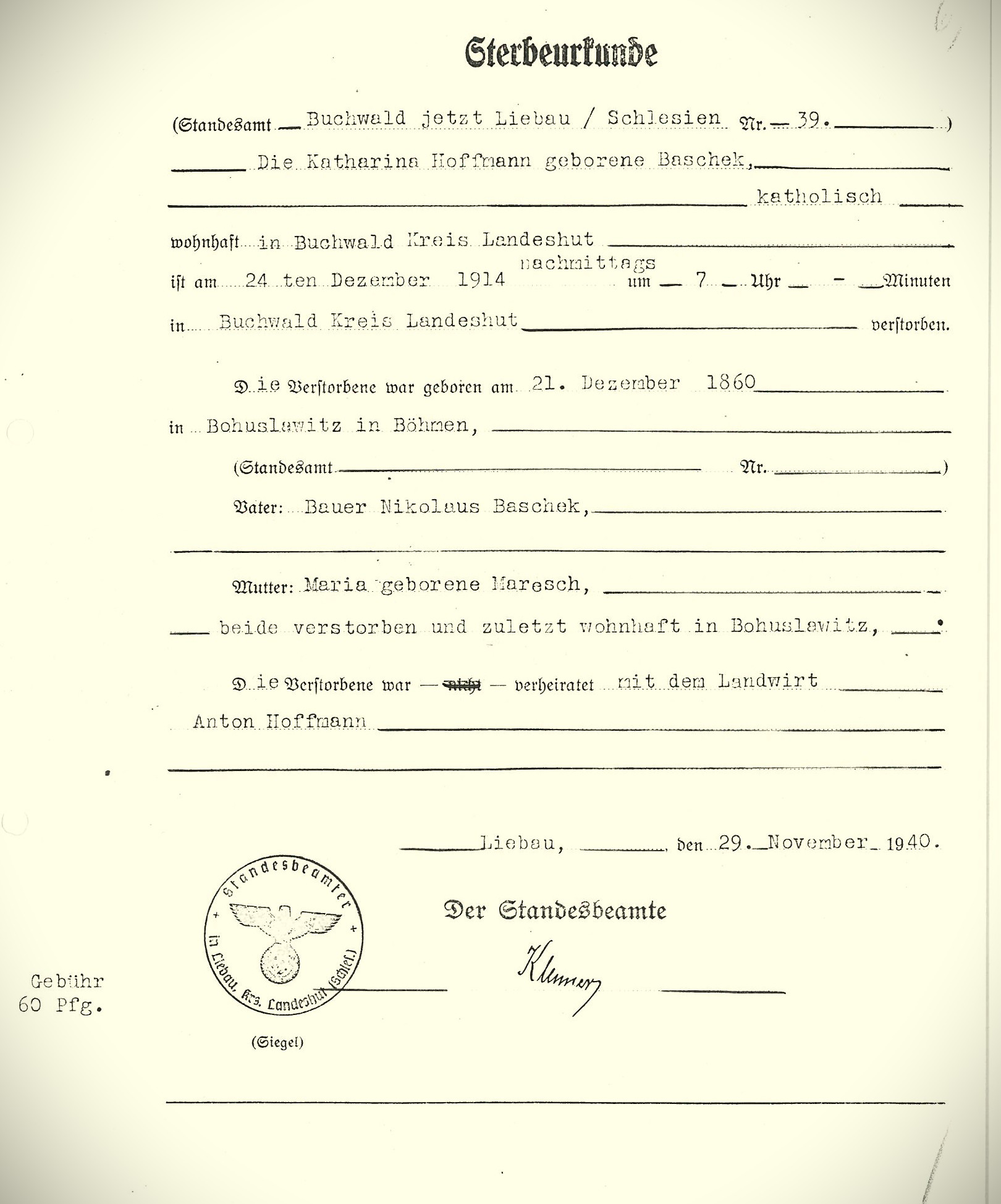 Zu den weniger gut erforschten Familienlinien meiner Vorfahren gehört die Linie meiner Urgroßmutter Gertud Hoffmann. Gertrud Hoffmann wurde am 10. Mai 1891 in Buchwald bei Liebau geboren.