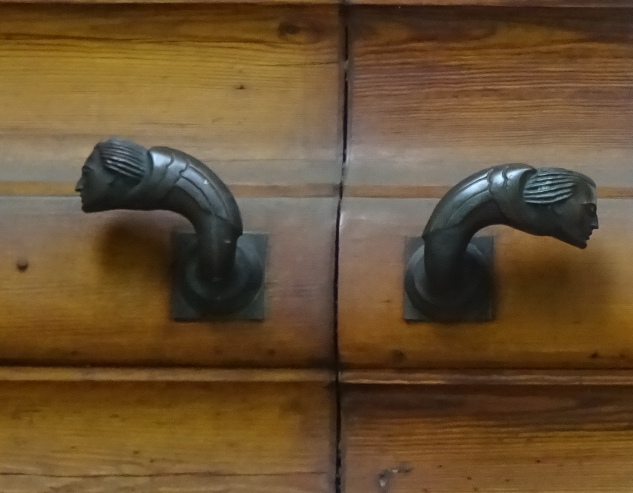 „Ausstattung: Der Hochaltar und die Nebenaltäre sind gebildet als Tische mit Rück- und Seitenwänden aus braunrotem hellgeädertem Marmor. Der Taufstein mit Becken und einem die Evangelistensymbole tragenden Bronzedeckel von Josef Dorls, der als Mitarbeiter für den bildnerischen Schmuck der Kirche herangezogen wurde. Von ihm stammen auch die bronzenen Flügel der Kommunionbank, die figürlichen Bronze-Türgriffe, eine unterlebensgroße Christusfigur aus Marmor (in der Klosterkapelle) und die zwei großen Reliefs der Straßenseite aus Werkstein mit je zwei das Wappen Christi haltenden Engeln“ [1]