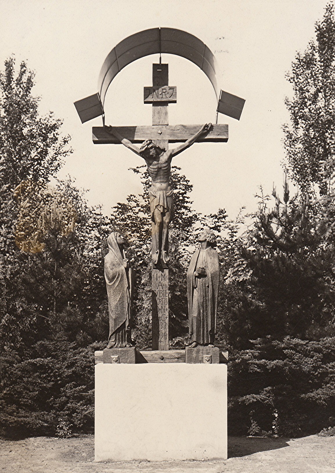 Das Kreuz war mit einem Rundbogen, wahrscheinlich aus Blech, überdacht. Allem Anschein nach, wurde die Jesusfigur aber schon vorher verwendet.[2]